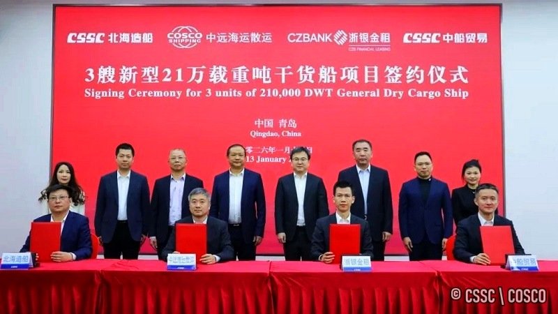 COSCO SHIPPING BULK placed orders for three new-generation dry bulk carriers of approximately 210,000 dwt, broadly aligned with the Newcastlemax class. The vessels will be built by CSSC Beihai Shipbuilding, with China Shipbuilding Trading (CSTC) participating in the contracts.