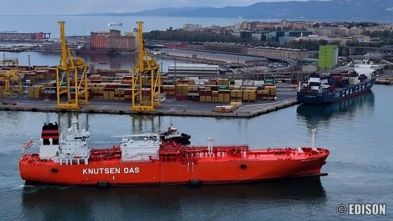 Edison’s LNG carrier, Ravenna Knutsen, in service since 2021, boasts a capacity of 30,000 cubic meters and is designed for maximum operational flexibility. Capable of adapting to various vessel types and port configurations, the carrier ensures safe, efficient, and versatile bunkering operations.