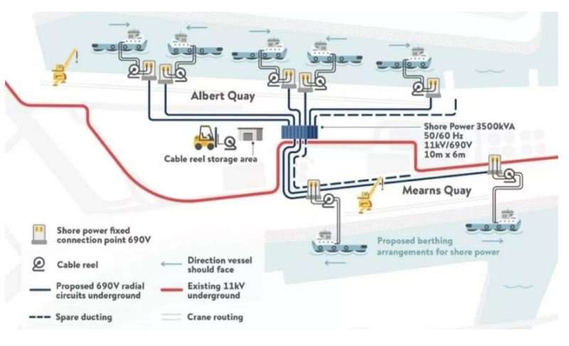 This setup will allow vessels to receive clean, grid-powered electricity under the port’s renewable energy tariff while berthed at Albert Quay and Means Quay in the port’s North Harbour. By enabling vessels to shut off their main and auxiliary engines while at berth, the project will reduce carbon emissions by more than 80% compared to marine gas oil (MGO) usage. Additionally, it will significantly lower particulates, nitrogen oxides (NOx), sulphur oxides (SOx), and noise.