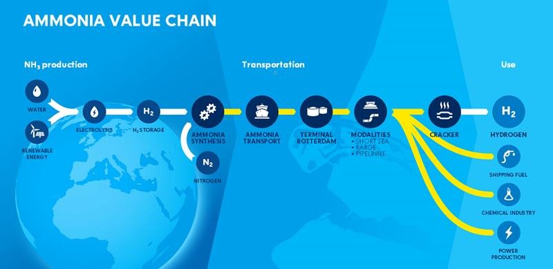 A study by Fluor shows that it is technically and economically feasible to safely convert ammonia into 1 million tons of hydrogen per year using a large-scale cracker. The study was commissioned by the Port of Rotterdam Authority and 17 companies from the region.
